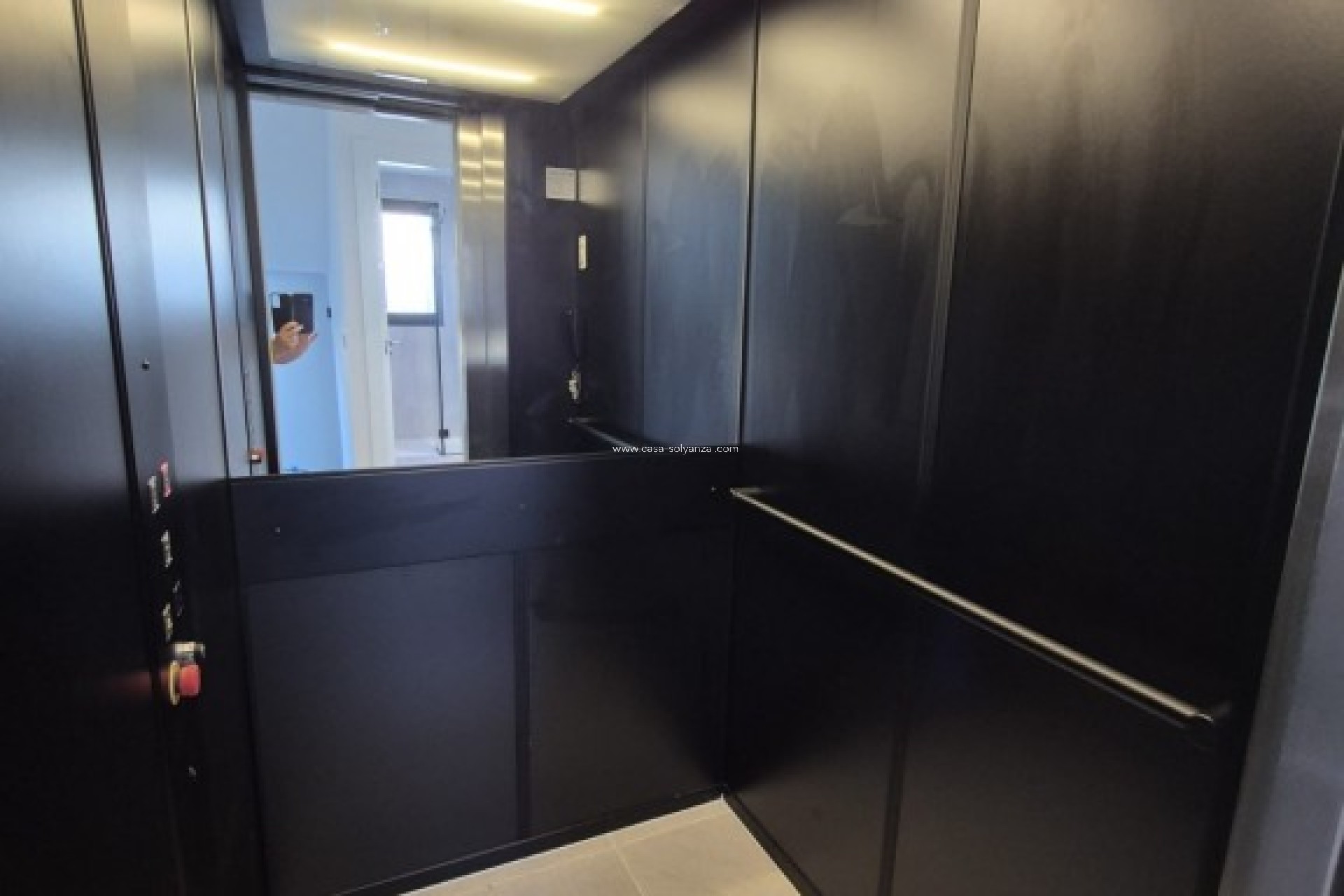 Im ersten Stock befindet sich ein weiteres sehr geräumiges Schlafzimmer mit eigenem Bad und Ankleidezimmer. Es gibt auch einen Abstellraum mit Safe. Vom Schlafzimmer aus haben Sie Zugang zum 40 m² großen Solarium mit Blick auf die private Terrasse und die Umgebung, einschließlich des Salzsees von Torrevieja.