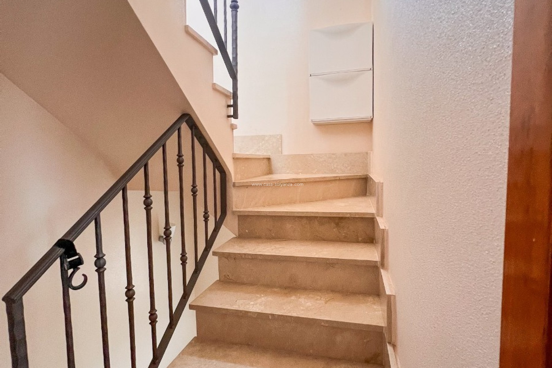 La distribución se organiza en varios niveles. En la planta baja, se encuentran el salón-comedor, un dormitorio, un baño completo, la cocina independiente y el lavadero con acceso al patio trasero. En la primera planta, los dos dormitorios principales disponen de salida a terrazas privadas, y uno de ellos además cuenta con balcón, proporcionando distintos espacios exteriores para relajarse o disfrutar del clima mediterráneo. La planta superior alberga un amplio y magnifico solárium privado, ideal como zona chill-out o de relax. Como valor añadido, la propiedad dispone de trastero interior y trastero exterior, aportando espacio extra de almacenamiento.