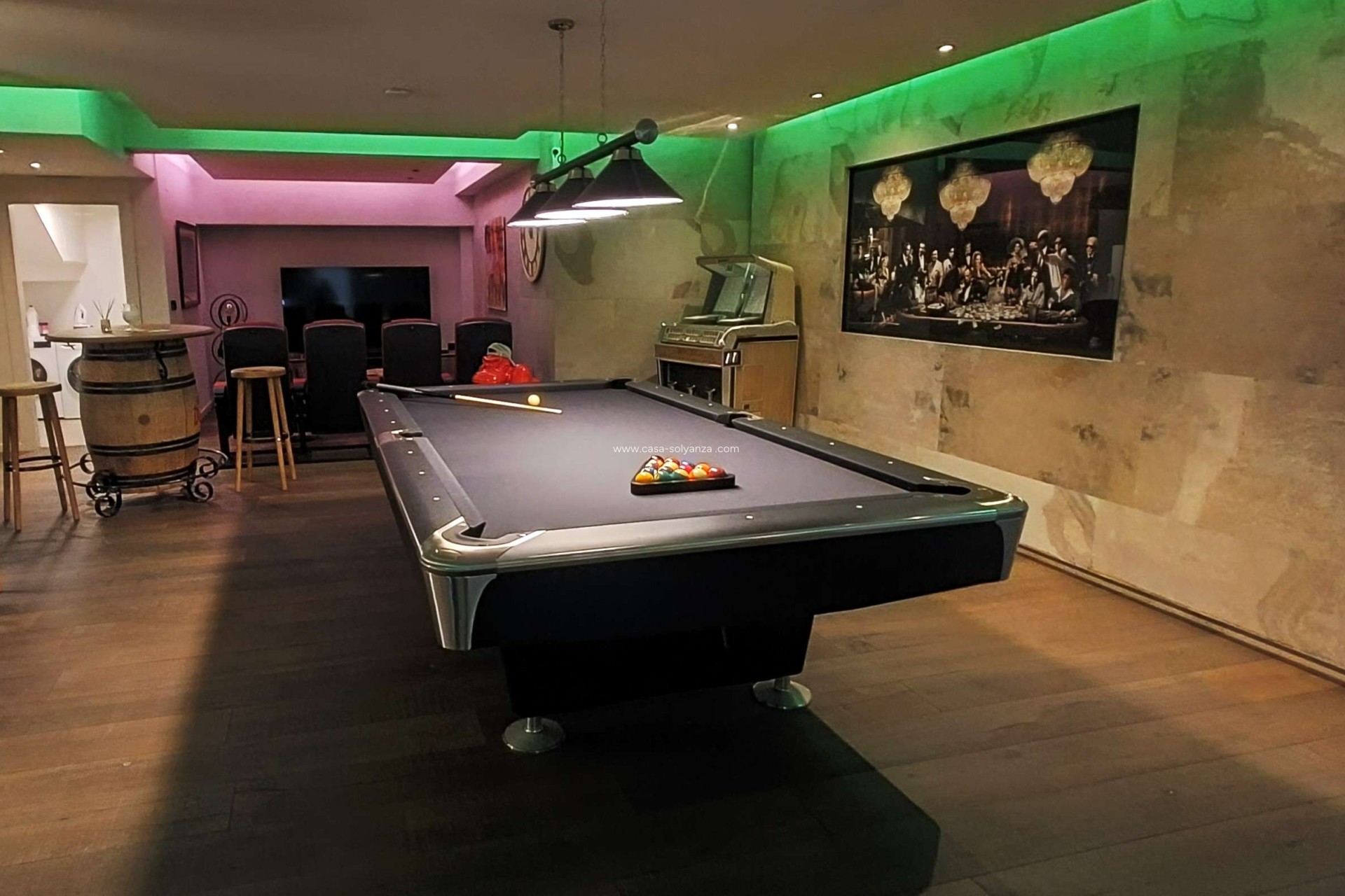 Esta excepcional villa independiente está idealmente situada dentro del prestigioso complejo La Finca Golf & Spa Resort, y ofrece una combinación perfecta de diseño moderno, comodidad y una extraordinaria vida al aire libre. Ubicada en una zona muy cotizada, la propiedad disfruta de un entorno tranquilo, a poca distancia a pie del centro comercial La Finca y a solo 10 minutos en coche de las encantadoras localidades de Algorfa y Ciudad Quesada.Al entrar en la villa, se accede a un luminoso y espacioso salón-comedor diáfano, perfectamente conectado con una cocina contemporánea totalmente equipada. Los ventanales del suelo al techo inundan el espacio de luz natural y crean una maravillosa sensación de amplitud, al tiempo que enmarcan las hermosas vistas de la terraza y el paisaje circundante. La impecable cocina cuenta con una elegante barra de desayuno que proporciona tanto espacio de almacenamiento adicional como un práctico espacio social, perfecto para comidas informales o para recibir invitados.También en la planta baja se encuentra uno de los tres dormitorios de generosas dimensiones, con armarios empotrados y elegantes puertas correderas de cristal que dan a una terraza lateral privada, un lugar ideal para disfrutar de un café matutino al aire libre. Un moderno cuarto de baño familiar con una elegante ducha a ras de suelo y una decoración minimalista se encuentra convenientemente situado cerca. El vestíbulo de entrada también alberga un discreto armario que sirve como centro neurálgico de la instalación eléctrica de la propiedad, que ha sido renovada recientemente en el último año, lo que ofrece una mayor tranquilidad.La primera planta alberga el impresionante dormitorio principal, con armarios empotrados, un elegante cuarto de baño en suite y unas vistas impresionantes desde los grandes ventanales. Esta planta también incluye el tercer dormitorio y un segundo cuarto de baño familiar. Ambos dormitorios tienen acceso directo al balcón de la primera planta, una maravillosa extensión del espacio habitable donde se puede disfrutar del sol y acceder fácilmente al amplio solárium de la planta superior.Una de las características más destacadas de esta villa es el espectacular solárium de la azotea, que ofrece unas increíbles vistas panorámicas de 360 grados, incluyendo vistas lejanas al mar. Este generoso espacio es perfecto para recibir invitados, relajarse con la familia o simplemente tomar el sol mientras se disfruta del clima mediterráneo.La propiedad también cuenta con un impresionante sótano que ha sido cuidadosamente transformado en una versátil zona de ocio, con un cine en casa y un bar, un entorno ideal para el entretenimiento. Este espacio flexible puede adaptarse fácilmente a las necesidades del nuevo propietario, ya sea como sala de juegos, gimnasio, oficina o sala de estar adicional. Los actuales propietarios han mejorado la funcionalidad instalando una pared interior que separa la zona recreativa principal del espacioso garaje doble, que también cuenta con armarios empotrados de suelo a techo para un amplio almacenamiento y con capacidad para dos vehículos grandes. Junto al espacio de entretenimiento hay un lavadero de buen tamaño, estratégicamente situado para mantener los electrodomésticos de lavandería discretamente fuera de la vista, al tiempo que proporciona un espacio de trabajo práctico para recibir invitados y para el uso diario.En el exterior, la villa destaca por su abundante espacio al aire libre. Accesible tanto desde el salón principal como desde la entrada privada, la zona exterior, de bonito diseño, cuenta con una gran piscina climatizada que disfruta de sol durante todo el día gracias a la favorable orientación de la propiedad. Alrededor de la piscina hay una zona de comedor y descanso, perfecta para disfrutar de los largos días de verano y las relajadas tardes al aire libre. Dos pérgolas bioclimáticas proporcionan sombra y privacidad, lo que mejora la utilidad del espacio exterior durante todo el año.Esta impresionante vivienda se ve realzada por una serie de extras de alta calidad, como aire acondicionado en toda la casa, paneles solares, persianas eléctricas, mosquiteras instaladas en el salón y en todas las puertas correderas de los dormitorios, una ducha exterior, cimientos de hormigón armado con vigas estructurales, calefacción por suelo radiante en los baños, un completo sistema de seguridad con cámaras y una cubierta para la piscina. La propiedad se ofrece parcialmente amueblada, con algunos muebles seleccionados negociables.Situada dentro del famoso complejo La Finca Golf & Spa Resort, la villa se beneficia de un entorno muy bien cuidado, con un campo de golf galardonado, lujosas instalaciones de spa y una animada zona comercial con restaurantes, cafeterías y servicios esenciales. El complejo es conocido por su ambiente tranquilo, sus pintorescos alrededores y su excelente accesibilidad, lo que lo convierte en un lugar muy deseable tanto para vivir de forma permanente como para disfrutar de las vacaciones en la Costa Blanca.