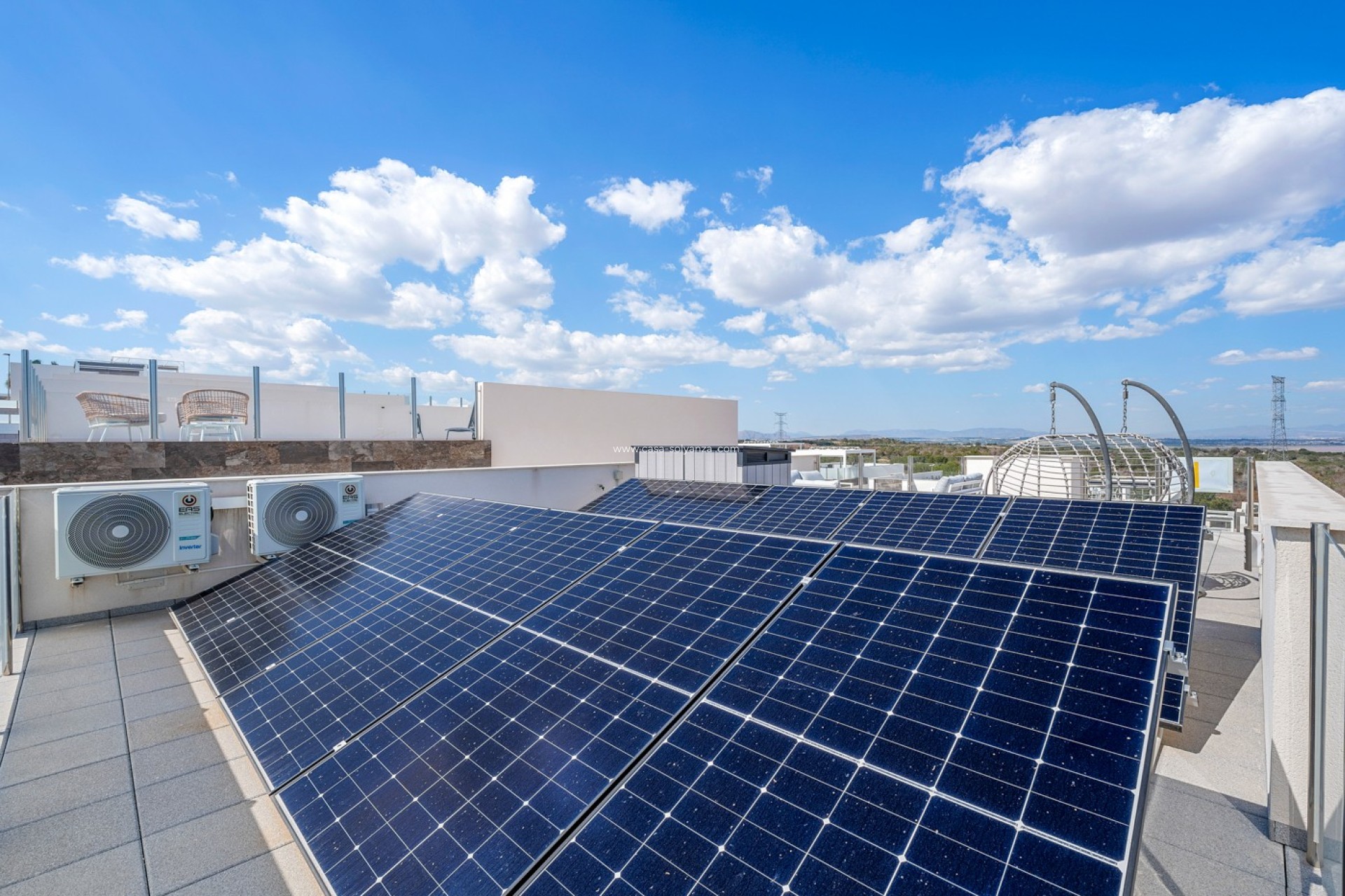Construite en 2023, cette villa est équipée de nombreuses prestations haut de gamme, telles qu’un système de climatisation centralisée avec contrôle Airzone, un système de filtration d'eau par osmose inverse, des moustiquaires, ainsi qu'un système de sécurité avancé avec alarme et caméras. De plus, les propriétaires actuels ont installé 10 panneaux solaires stratégiquement positionnés sur le côté nord du solarium, garantissant ainsi une intimité totale tout en préservant les vues panoramiques spectaculaires.