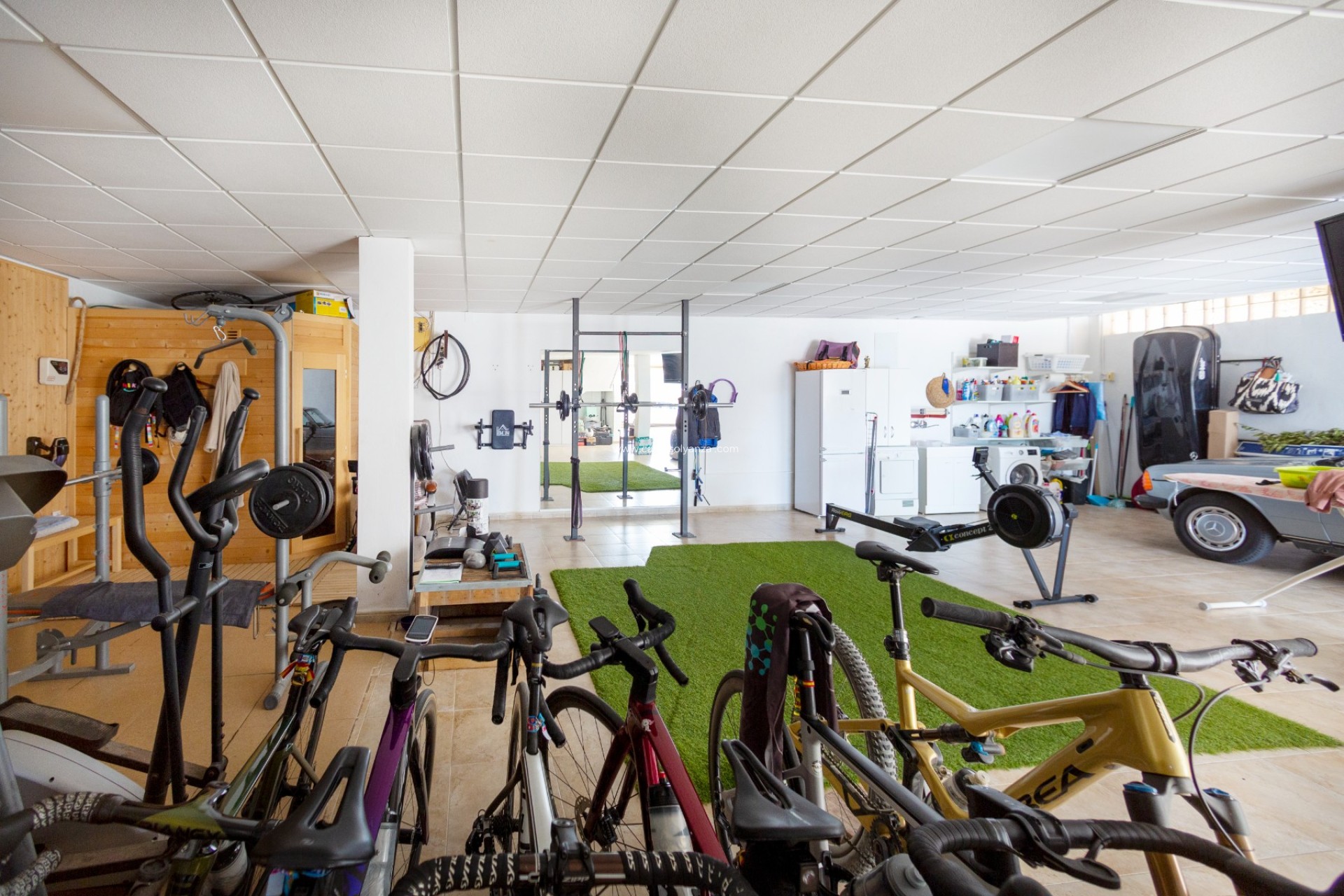 - 170m2 souterrain: Het souterrain bestaat uit een garage voor minimaal 4 auto's, een fitnessruimte, een sauna, een werkruimte en een kleedkamer.