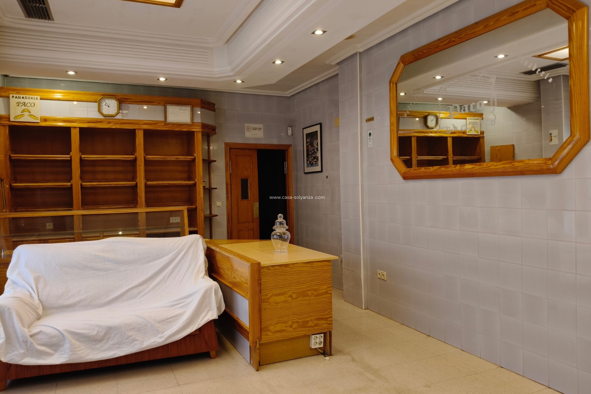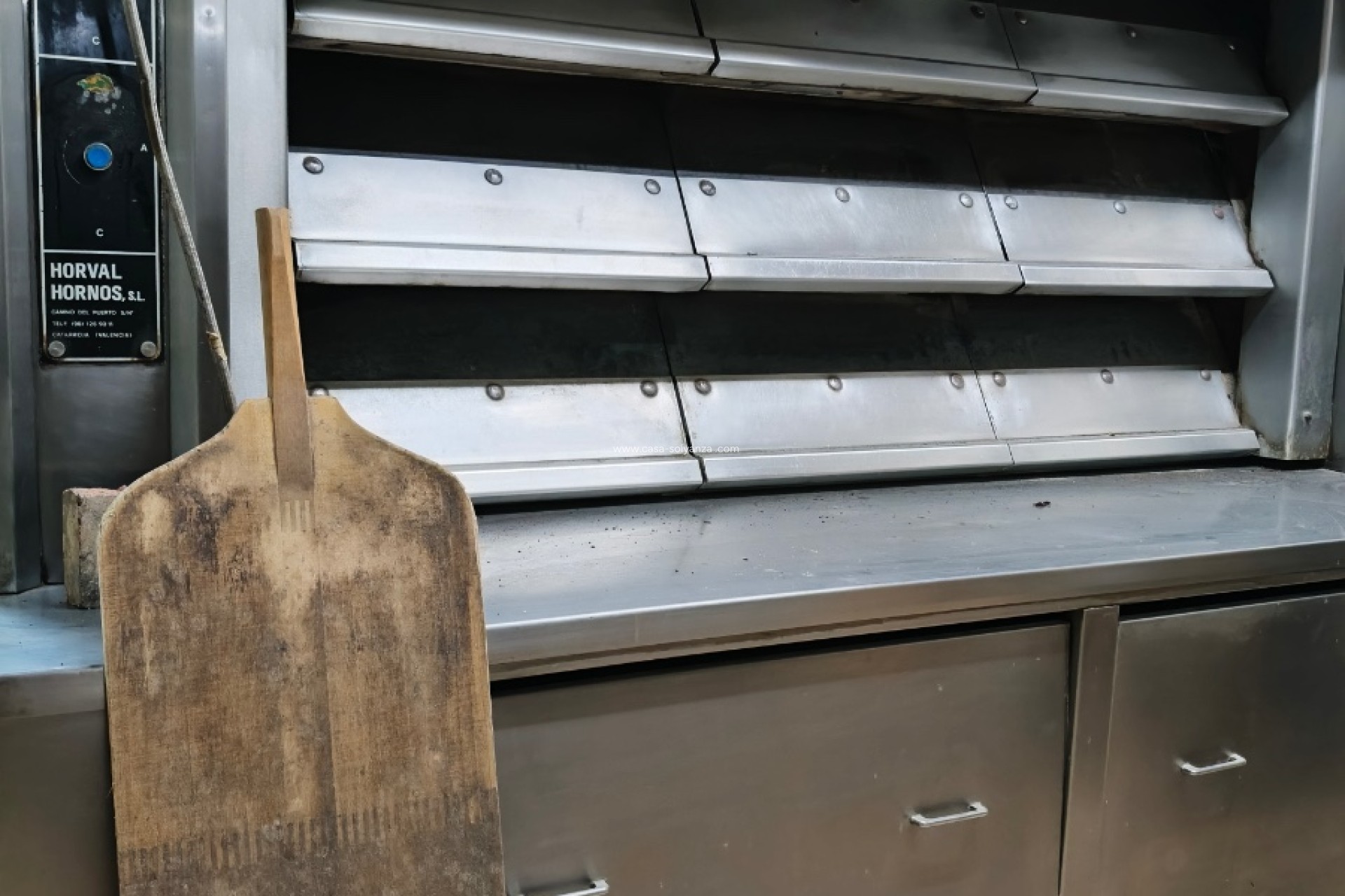 Grote ovens voor het bakken van brood Mixer en werkruimte Glazen vitrines en kassabalie Voorzieningen met badkamer Een goederenlift voor het vervoeren van producten naar de kelder.
