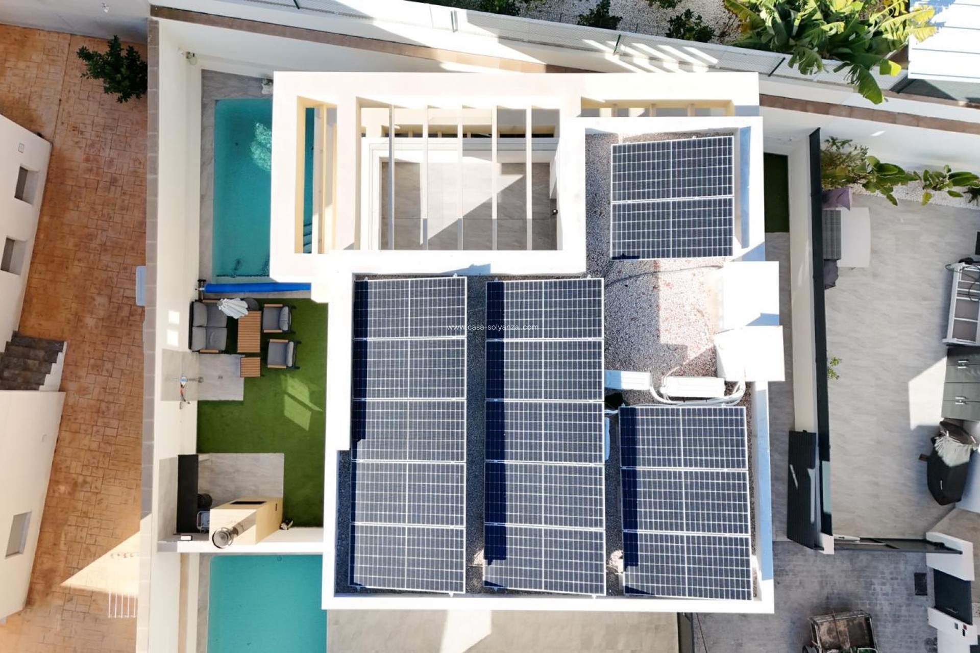 Het huis onderscheidt zich ook door zijn hoge energie-efficiëntie, dankzij de installatie van 15 zonnepanelen, die het elektriciteitsverbruik aanzienlijk verminderen.