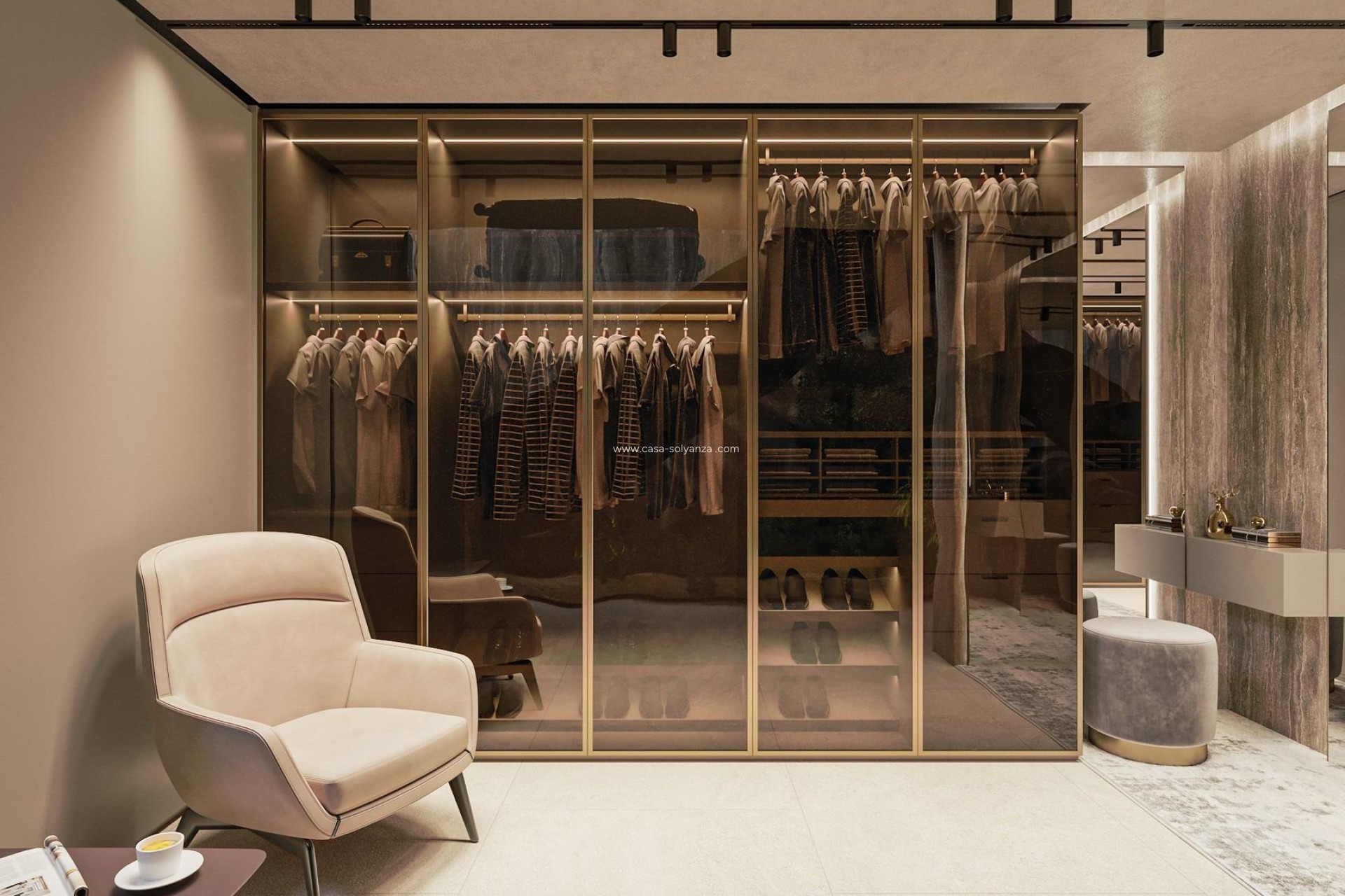 De woning beschikt over vier ruime slaapkamers met eigen badkamers, elk ontworpen als een privé-toevluchtsoord met hoogwaardige afwerking en directe toegang tot de terrassen. De master suite valt op door de inloopkast en de luxueuze badkamer met een vrijstaand bad met uitzicht op zee, wat een werkelijk ontspannende sfeer creëert, geïnspireerd door luxe spa-omgevingen.