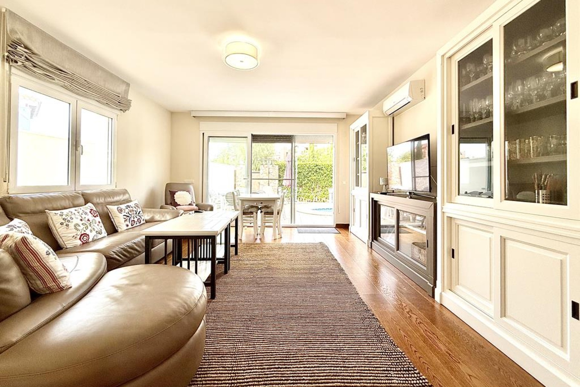 We are thrilled to offer this gorgeous four bedroom, three bathroom Baron villa, located in the prestigious Phase 3 of the Mar Menor 1 community. Tucked away in a tranquil cul-de-sac, this elegant home enjoys fountain views to the front and complete privacy at the rear, offering an unrivalled sense of peace and exclusivity. The west-facing orientation allows you to bask in glorious afternoon and evening sun beside your own swimming pool, making it perfect for both relaxation and entertaining.This villa is being sold fully furnished, with air conditioning in every room, ensuring year-round comfort. The heart of the home is the extended and modernised kitchen, complete with a dedicated utility area and sliding doors leading to the garden. Cleverly designed for practicality, the property boasts two generous storage rooms, one of which has direct access to the front — ideal for securely storing bicycles, golf clubs, or other leisure equipment. The downstairs covered terrace has been enclosed to create an additional living area, seamlessly connecting to the original dining space through wooden sliding doors. Laminate wood flooring runs throughout both floors, enhancing the home’s modern yet inviting feel.The layout is designed for both family living and guest comfort. The ground floor features a welcoming dining area, a spacious living room, a well-appointed kitchen, a bathroom, laundry facility and two ample storage units. Upstairs, the master suite boasts an en suite bathroom, extra full-height wardrobes, and its own air conditioning unit. Three further double bedrooms, all with full-height wardrobes, share a contemporary shower room.Further highlights include gas central heating throughout, off-road parking for one vehicle, and additional communal parking nearby. A rear gate provides direct access to a communal area and children’s playground, enhancing the property’s appeal for families.Mar Menor Golf Resort itself is a coveted destination for those seeking a blend of luxury and leisure, offering a world-class 18-hole golf course designed by Jack Nicklaus, a five-star hotel, fine dining restaurants, sports centre with paddle courts, a spa, and beautifully maintained communal gardens. Its prime location places you just a short drive from the sandy beaches of the Mar Menor lagoon and the Mediterranean, as well as local shops, bars, cultural attractions and airports.
